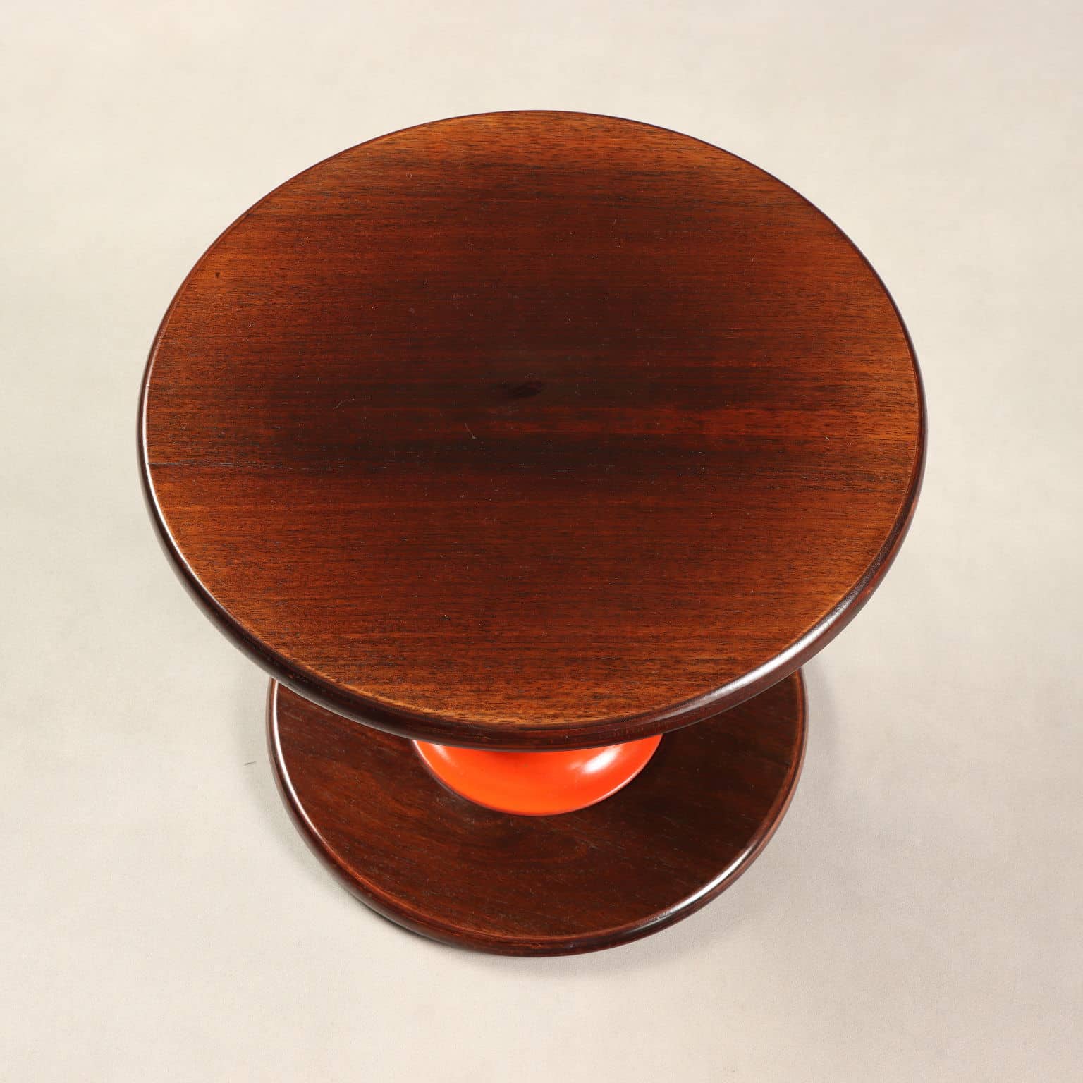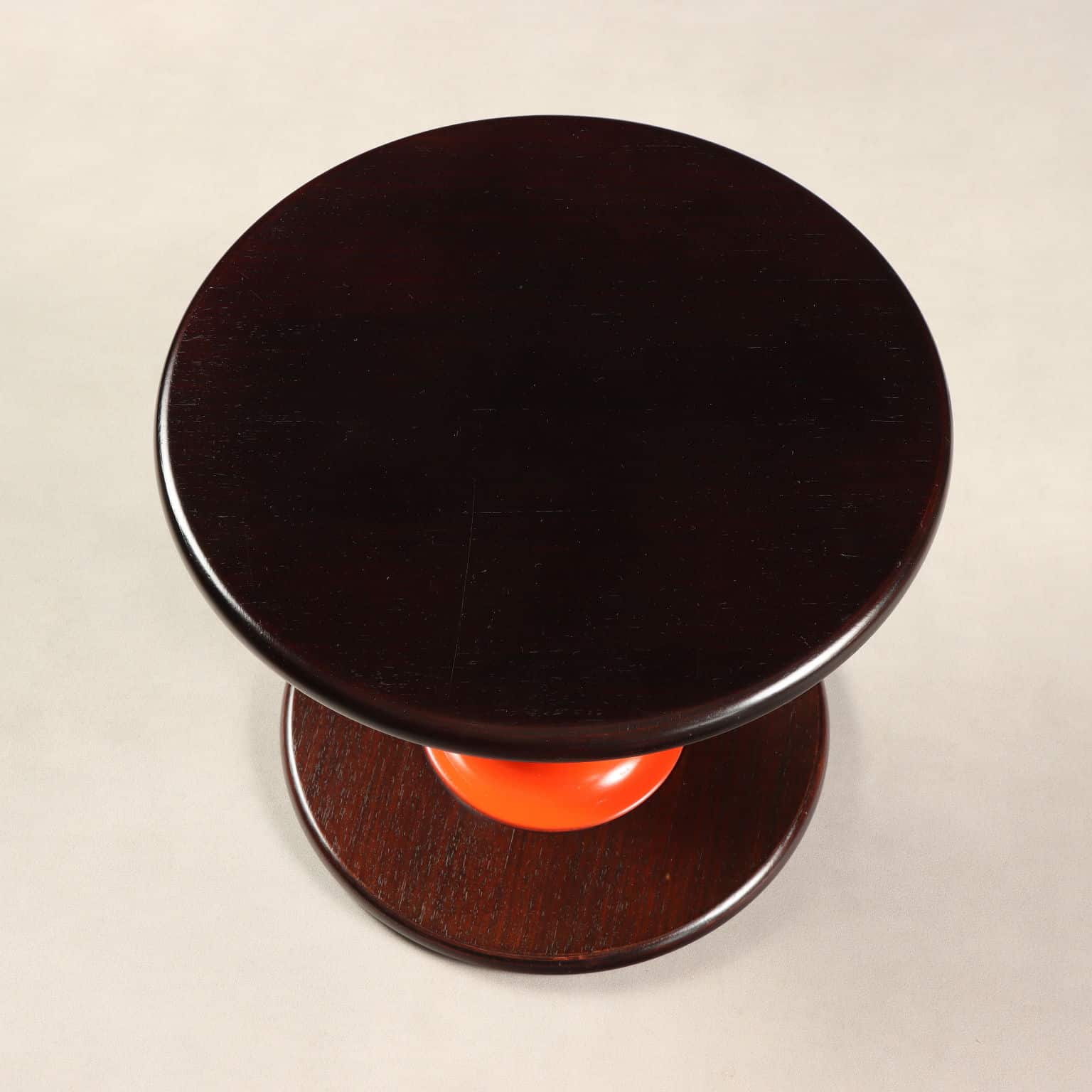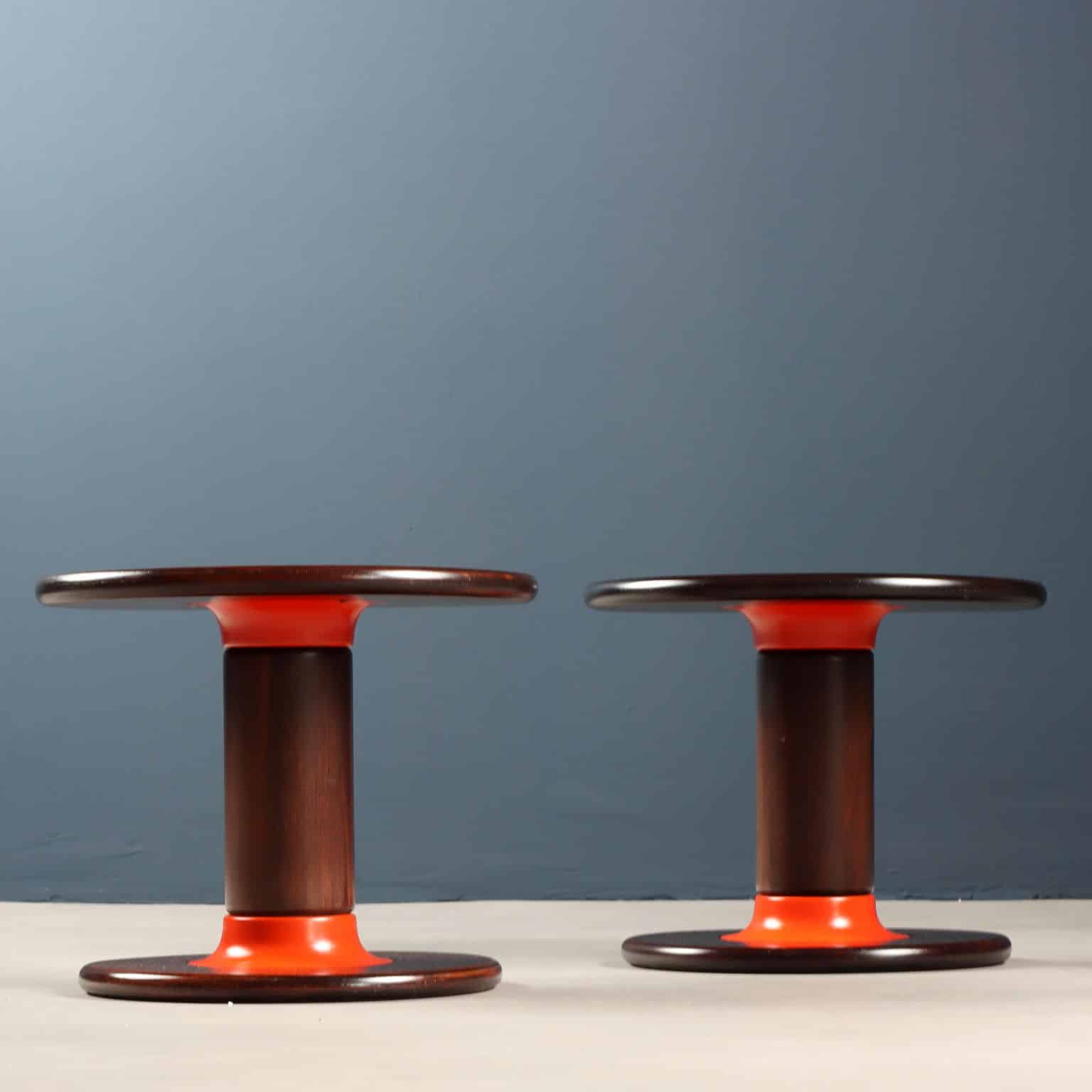 Due piccoli tavolini da salotto modello ‘Rocchetto’, disegnati da Ettore Sottsass e prodotti da Poltronova a partire dal 1964.
