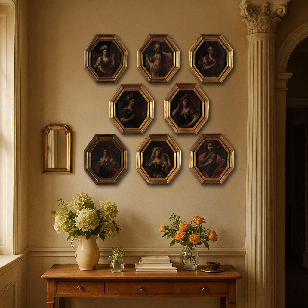 Il gruppo di otto dipinti in oggetto (figg. 1-8) rappresenta, nel classico formato fiorentino dell’ottagono, una serie di effigi femminili a mezza figura.
