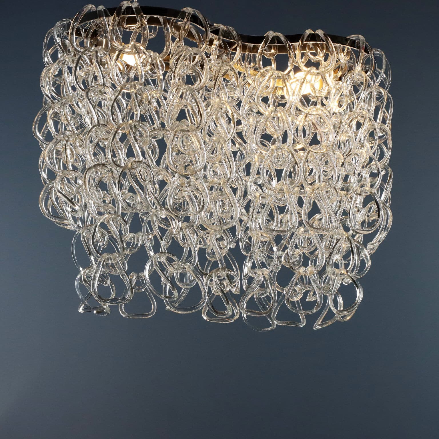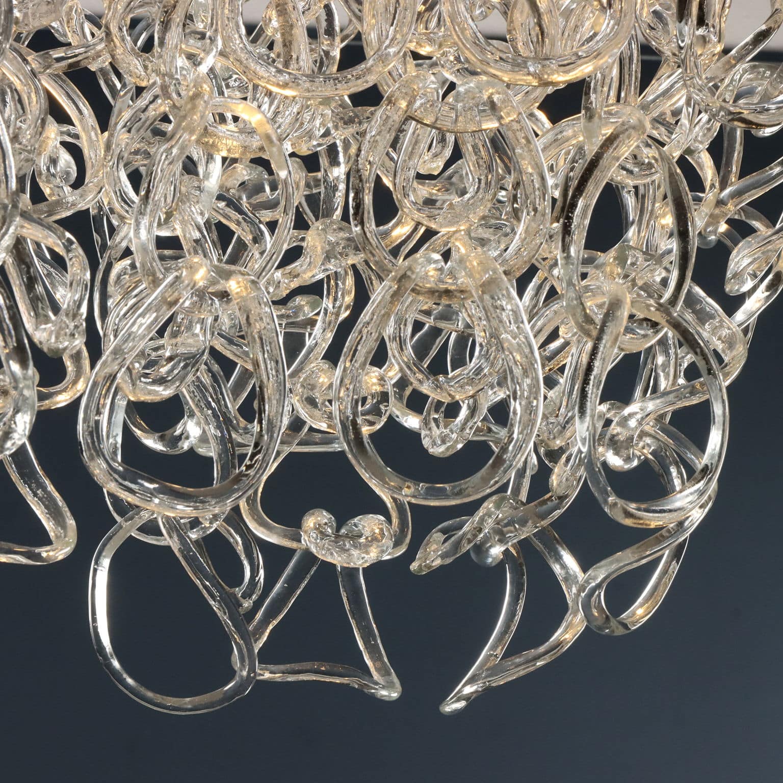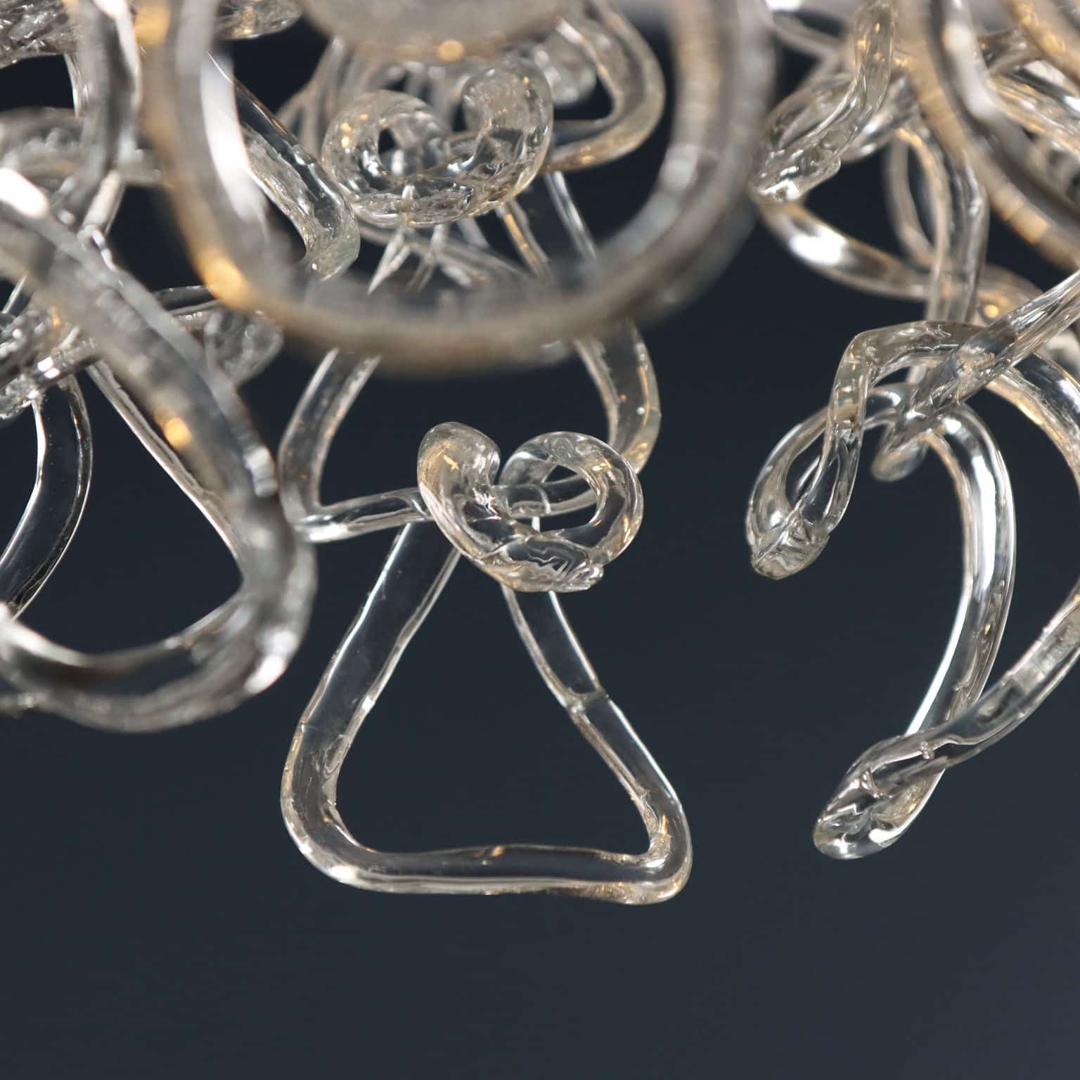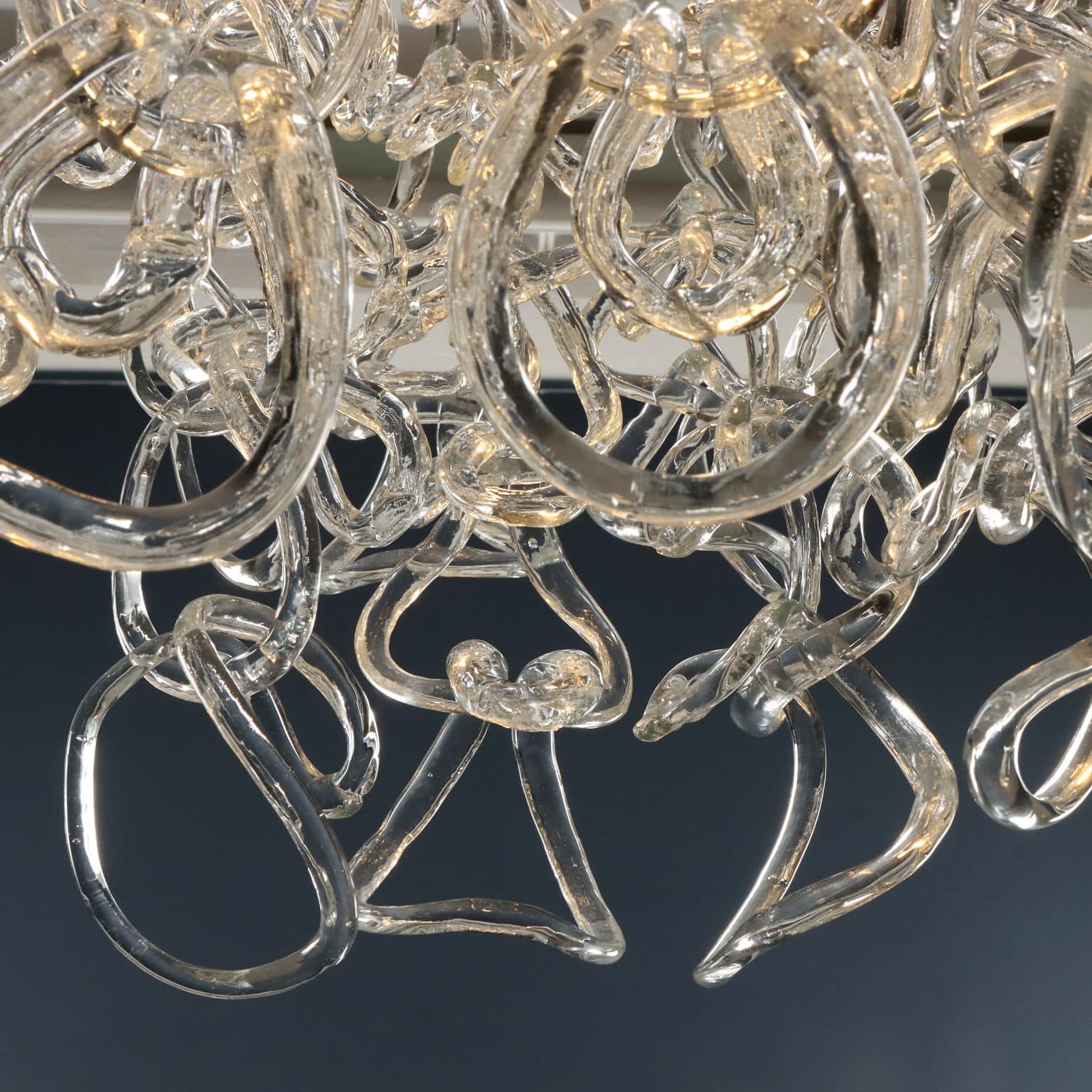 Lampade a soffitto della serie ‘Giogali’ con pendenti in vetro di Murano trasparenti, intrecciati su una cornice in metallo cromato.